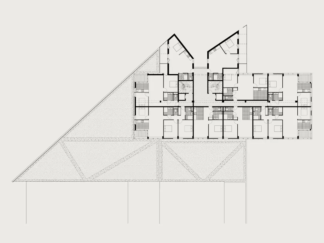 Une attention particulière est portée à la qualité des accès et des circulations des logements, tant pour le confort des habitants que pour permettre une séparation claire entre les flux des logements en BRS et ceux en accès libre. Cette distinction, pensée dès l’amont, répond aux exigences du programme ainsi qu’à la volonté de La Poste Immobilier de pouvoir commercialiser le projet en deux lots distincts, autonomes sur les plans fonctionnel et technique.