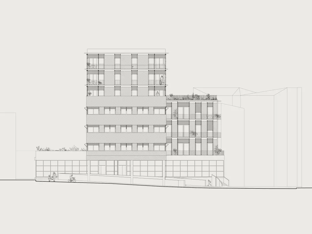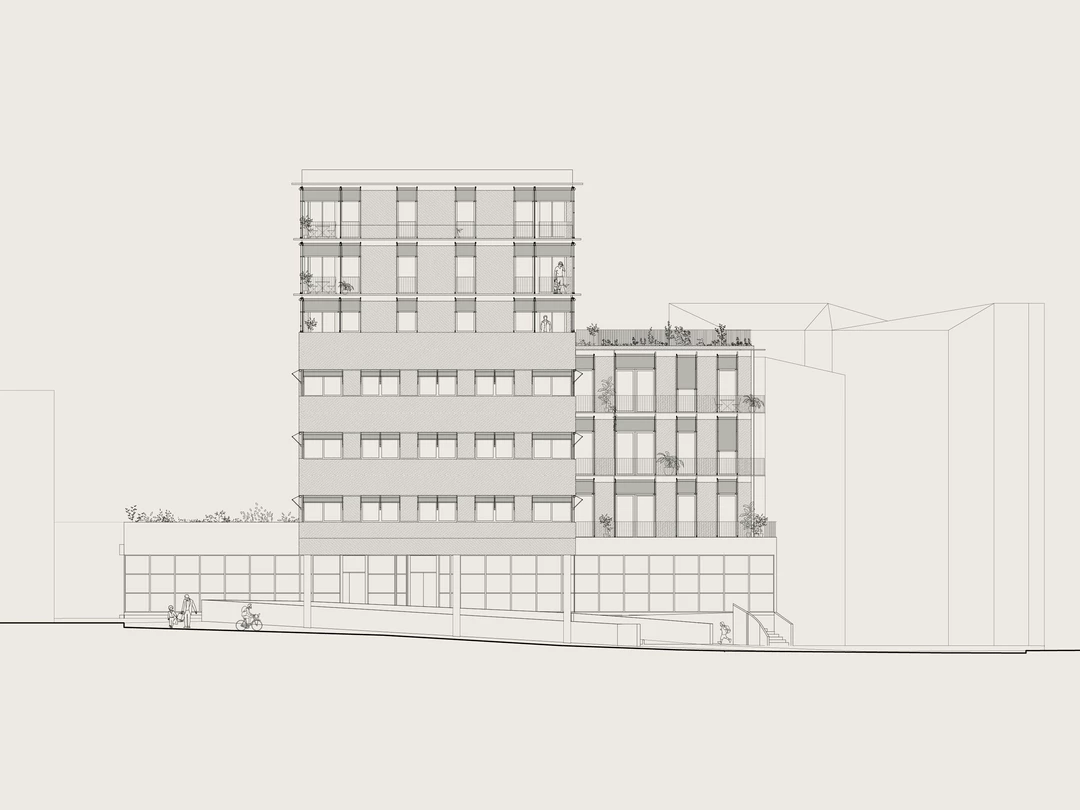Une attention particulière est portée à la qualité des accès et des circulations des logements, tant pour le confort des habitants que pour permettre une séparation claire entre les flux des logements en BRS et ceux en accès libre. Cette distinction, pensée dès l’amont, répond aux exigences du programme ainsi qu’à la volonté de La Poste Immobilier de pouvoir commercialiser le projet en deux lots distincts, autonomes sur les plans fonctionnel et technique.