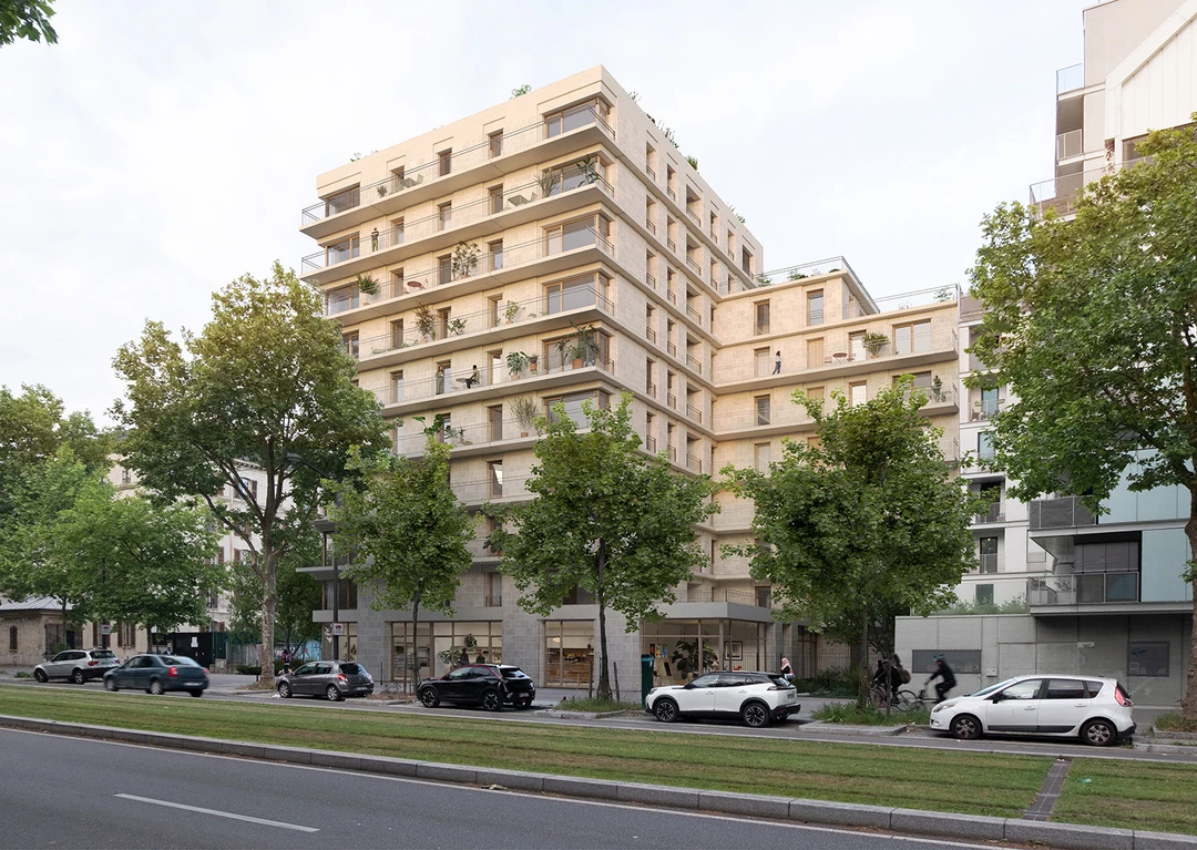 Implanté sur le boulevard Davout, au cœur du 20e arrondissement de Paris, le projet s’inscrit dans un tissu urbain hétérogène marqué par l’histoire des fortifications, les logements sociaux et les mutations contemporaines. Il dialogue avec son environnement en respectant les continuités bâties, les vues et l’intimité du voisinage, tout en affirmant une volumétrie douce et contextuelle grâce à un épannelage en gradins et une façade protectrice côté poste de police.